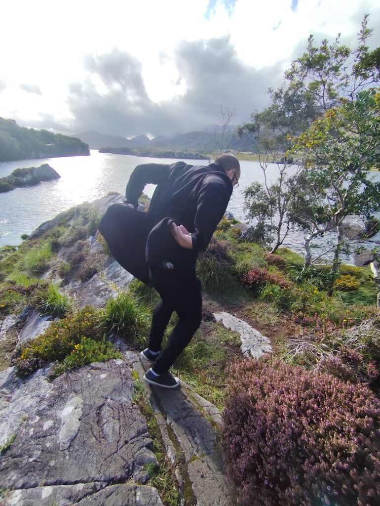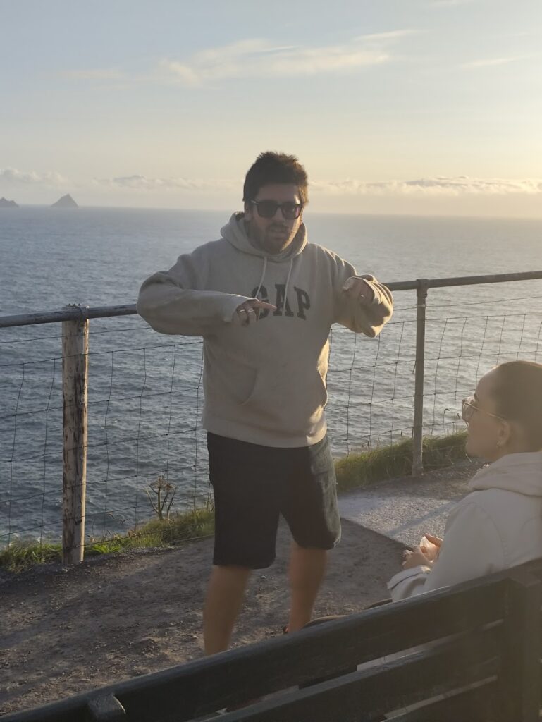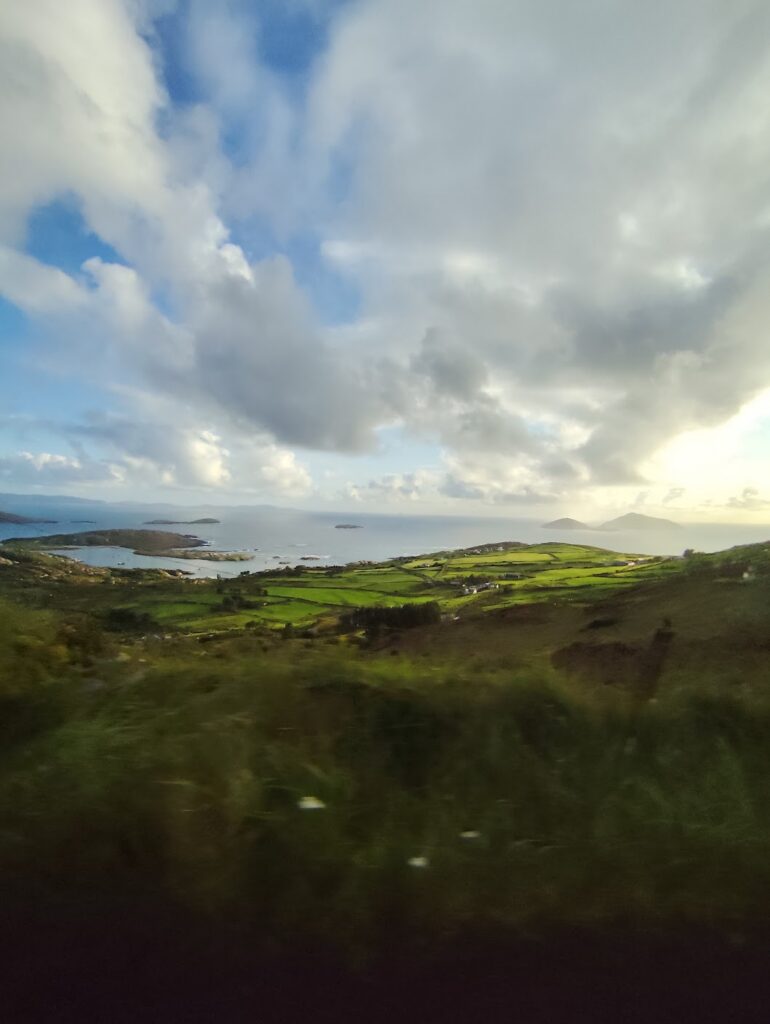 No dia seguinte, partimos para visitar o Kerry Cliffs fazendo várias paradas no caminho. Parecia uma rota turística e tinha muita natureza. O interior da Irlanda é muito agradável e as paisagens são realmente lindas. Nesse momento eu consigo dar uma desconectada e apreciar o momento. Paramos em diversos locais e infelizmente eu não anotei os nomes, mas foi uma rota muito bacana que fizemos.