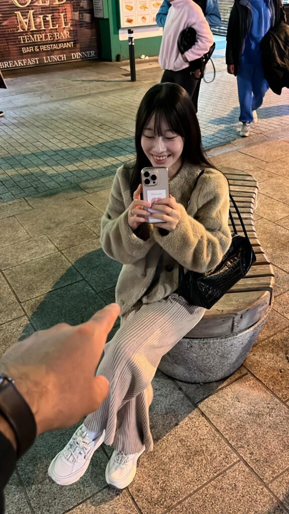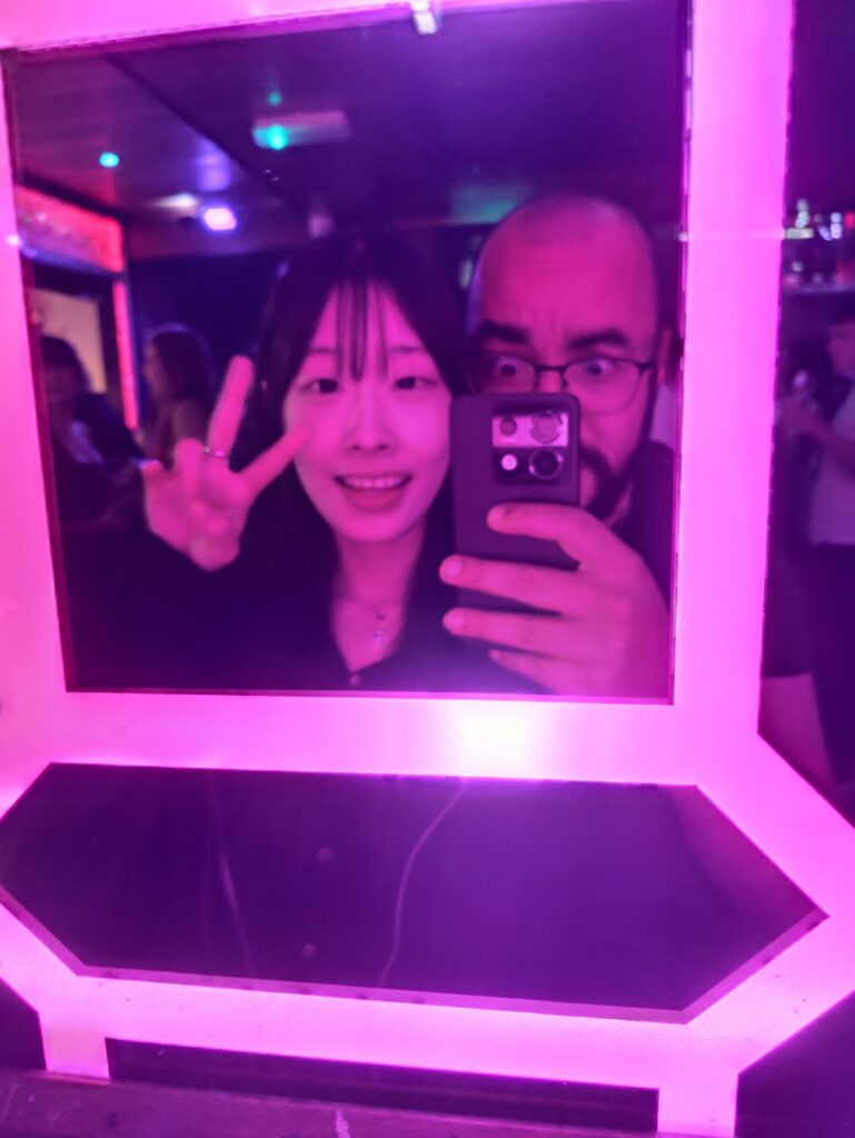 Essa garota é incrível. Quando eu conheci, achei que ela tinha 18 anos, quando na verdade tinha 30. Suas primeiras palavras foram que ela era da Coreia do Norte e o pai dela era o Kim Jon Un (piada que permanece até hoje). Ela trabalha como consciousness coach na coreia. Incrivelmente, apesar da barreira linguística, sempre conseguimos nos comunicar bem com uma ótima conexão. Ela é definitivamente uma rede de apoio e sempre que possível, tento encontrar com ela.
