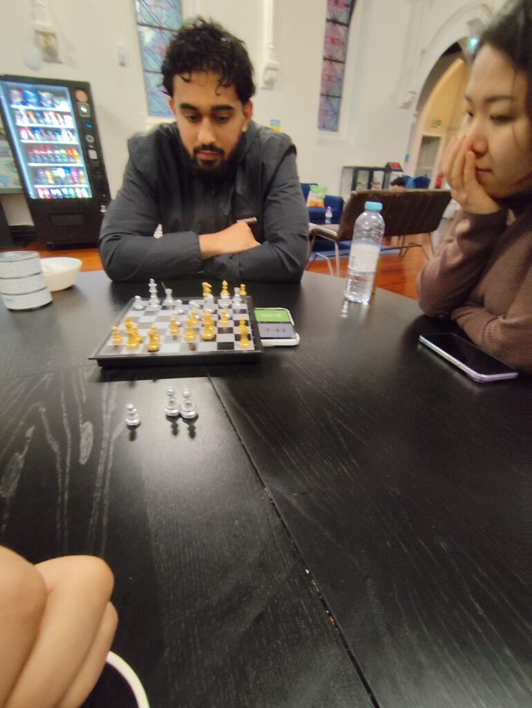 Na mesma semana, vi uma garota que parecia ser japonesa no café da manhã na mesa ao lado da minha e fiquei pensando se deveria puxar conversa com ela ou não. Então tomei coragem e decidi ser diferente do que costumava ser e comecei a puxar papo com ela. Seu nome era bem estrangeiro, K. Fiz minhas brincadeiras de costume e ajudei ela com algumas coisas em Dublin sobre como funcionava. Ela falou que também gostava de xadrez então começamos a jogar em uma das noites.
