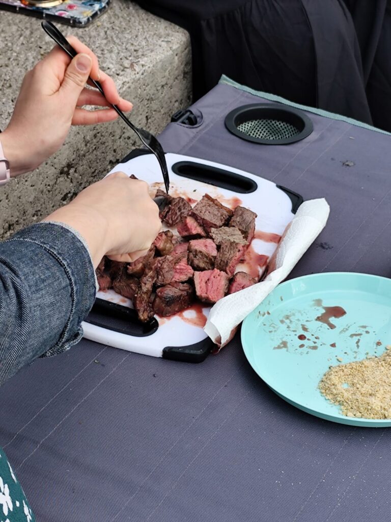 Já no domingo, fomos para uma praia (de pedras) e fizemos um churrasco. Deu para sentir o sabor do sul de novo.